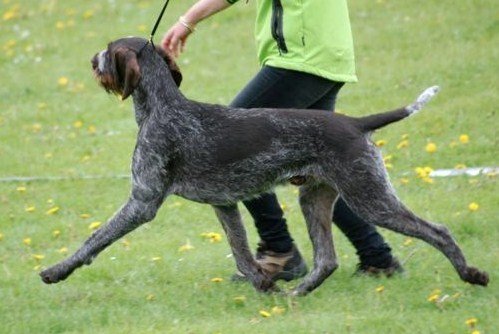 Strävhåriga vorstehn Tilde, våra stammisar Scott & Kaiser samt lilla Selma.